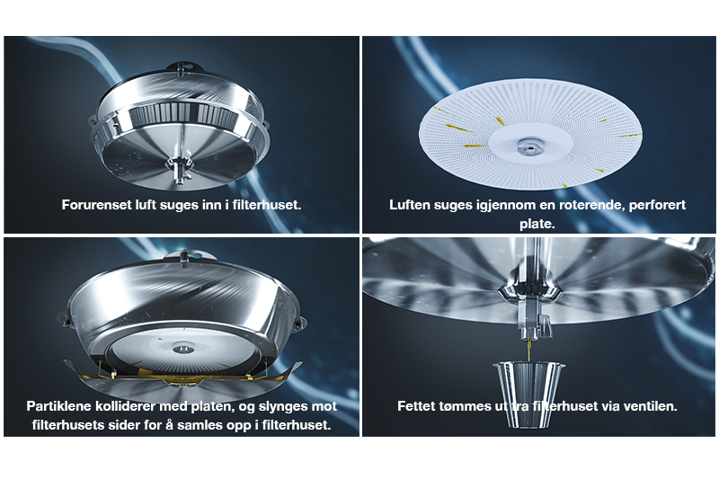 - Mekanisk filtrering: Utviklet for høy fettutskilling ved lave luftmengder.